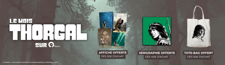 Un enfant tombé des étoiles a grandi parmi les hommes. Héros malgré lui, Thorgal n’a cessé de voyager, entre destins tourmentés, mondes mystérieux et quêtes impossibles. Octobre lui rend hommage. Pendant tout le mois, nous célébrons cet univers mythique sur le 9eme Store (notre boutique officielle) avec des articles offerts à découvrir selon vos achats :